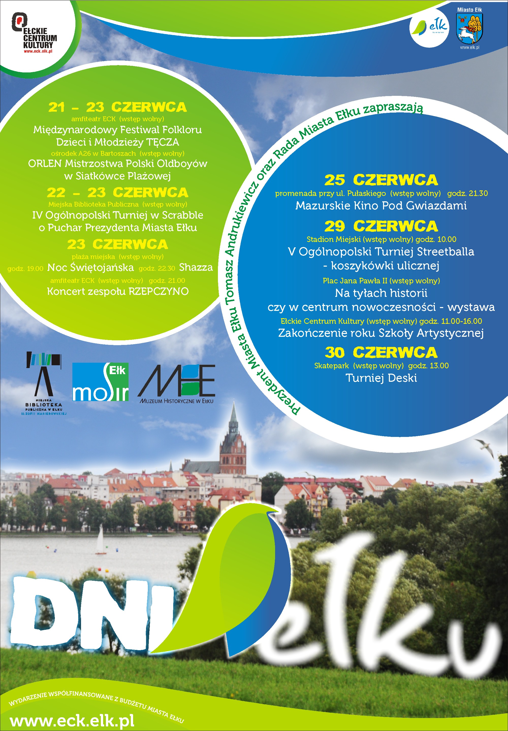 DNI_ELKUZapraszamy do udziału w obchodach tegorocznych Dni Ełku. Od 21 czerwca w mieście zaplanowano szereg wydarzeń artystycznych, kulturalnych i sportowych, z których każdy znajdzie coś dla siebie.